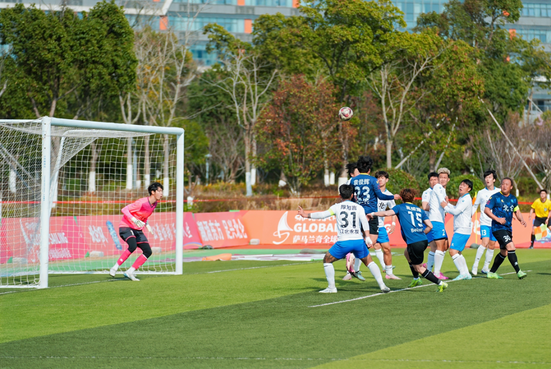 比赛开场不久,相对年轻的江北队抓住机会形成单刀,结果被门柱挡住,让主场球迷惊出一身冷汗。
