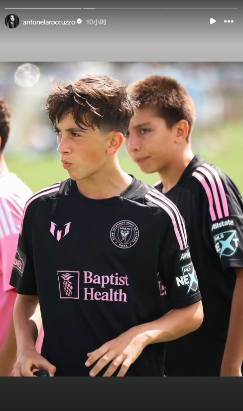 04月06日讯 今日梅西妻子安东内拉转发动态,14岁蒂亚戈身穿迈阿密国际球衣。