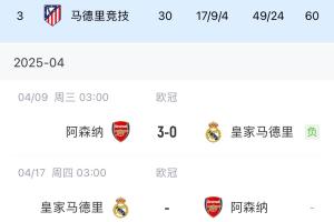 体育资讯04月09日讯 皇马欧冠1/4决赛首回合0-3落后阿森纳,下周移师伯纳乌进行。